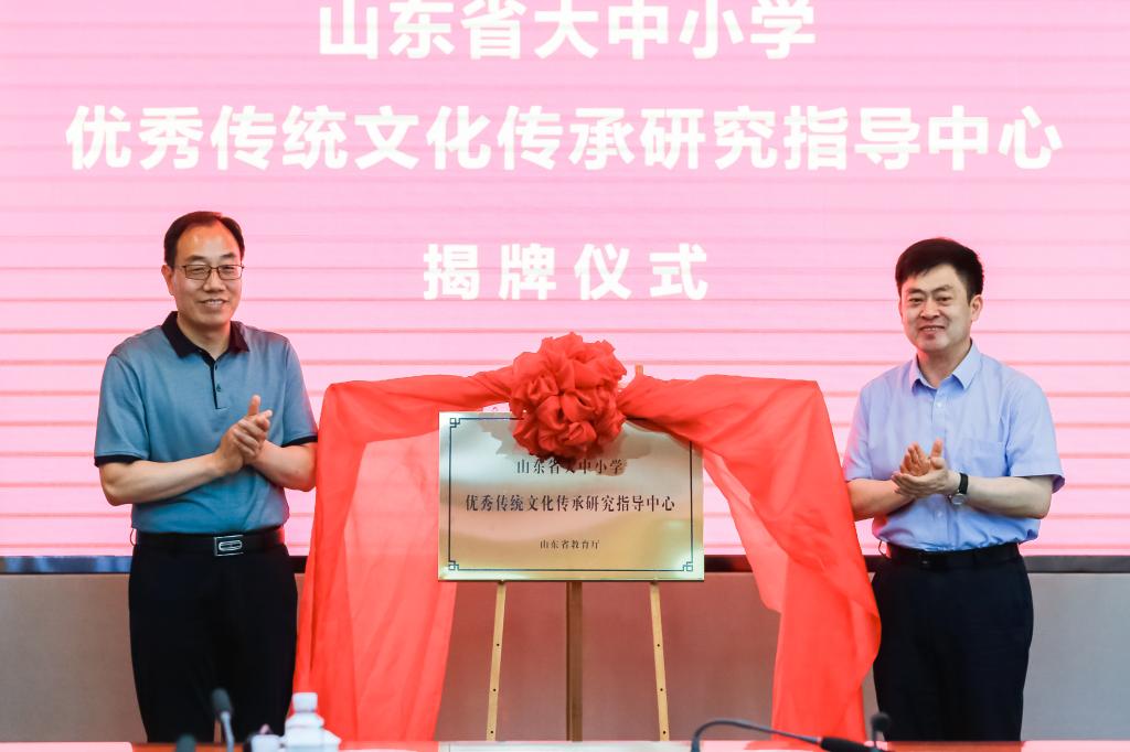 随后,冯继康和戚万学共同为山东省大中小学优秀传统文化传承研究指导中心揭牌。