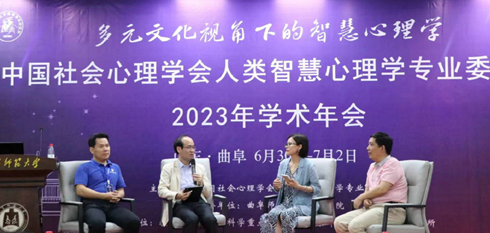 7月2日下午,本届学术年会的圆桌论坛召开。西南大学心理学部毕重增教授、三亿网页版登录入口心理学院院长何文广教授、苏州大学教育学院彭彦琴教授、南京师范大学心理学院汪凤炎教授作为与会嘉宾就“当前智慧心理学发展中的机遇与挑战”进行了热烈讨论。彭彦琴指出,智慧包含着良知(道德),人心具有向善的能力,要重视“德”在智慧发展中的重要作用。毕重增提出,当代人类要跟上时代技术的步伐,在像ChatGPT这样的大数据的空间里面找到我们的智慧的模式。何文广就“老龄化社会与智慧之间的关系”这一话题展开谈话,提出智慧与年龄间的密切关系。汪凤炎指出智慧在人类发展中的重要作用,每当民族有危难时,总有很有智慧的人出现,力挽狂澜,带领我们走出水火,变危机为转机。