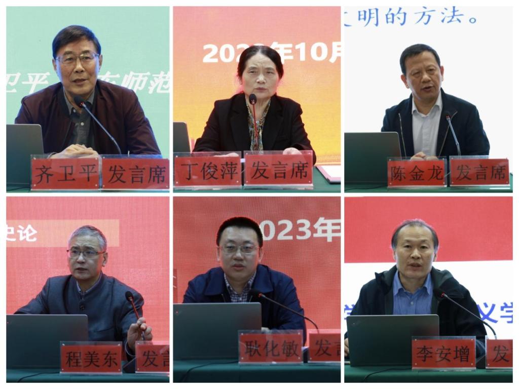 在主题发言环节,会议邀请华东师范大学齐卫平教授、武汉大学丁俊萍教授、华南师范大学陈金龙教授、北京大学程美东教授、中国人民大学耿化敏教授、三亿网页版登录入口李安增教授围绕会议主题,分别做了“文化自强——学习研究阐释习近平文化思想”、“马克思主义与中国传统文化相结合的波澜历程”、“‘两个结合’的三维阐释”、“如何在党史宣传工作中坚持正确的党史观”、“深化对新时代党的理论创新的规律性认识”、“毛泽东对推进‘第二个结合’的卓越贡献”的主题发言。主题发言环节由南京师范大学马克思主义学院王跃教授主持。
