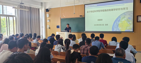 汤国安教授的报告聚焦哲学与科学研究的紧密关系,强调唯物辩证法在地理学研究中的指导意义。他指出,哲学思想深植于科学的逻辑体系中,尤其在地理学这一综合学科中,更需要“地理哲学”的支撑。通过洪堡的自然整体观、李四光的自然界统一整体思想、黄秉维的自然区划理念以及钱学森的系统思维等典型案例,汤教授生动阐释了哲学思维在地理学理论构建与实践中的关键指导作用,同时也指出当前学科面临的“哲学贫困”问题,启发师生深入思考。