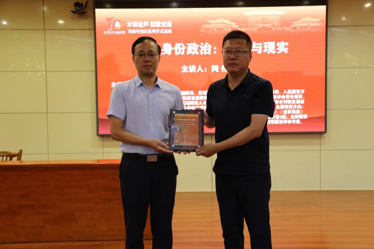 讲座由政治与公共管理学院教授肖文超主持。政治与公共管理学院党委副书记、院长李增元教授代表学院向闫伟教授赠送海报纪念摆台,闫伟教授现场为讲座海报签名,该签名海报将作为“羲和讲堂”名家记忆存档,见证学院学术交流历程。